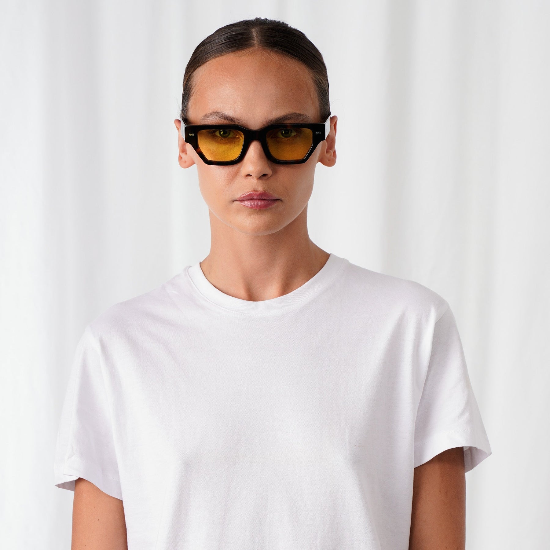 Handgefertigte Acetatrahmen mit CR39-Gläsern für kristallklare Sicht, verstärkt durch Anti-Blend- und Anti-Kratzer-Technologie. Abgeschlossen mit langlebigen Nieten-Scharnieren für dauerhafte Stärke und täglichen Stil.